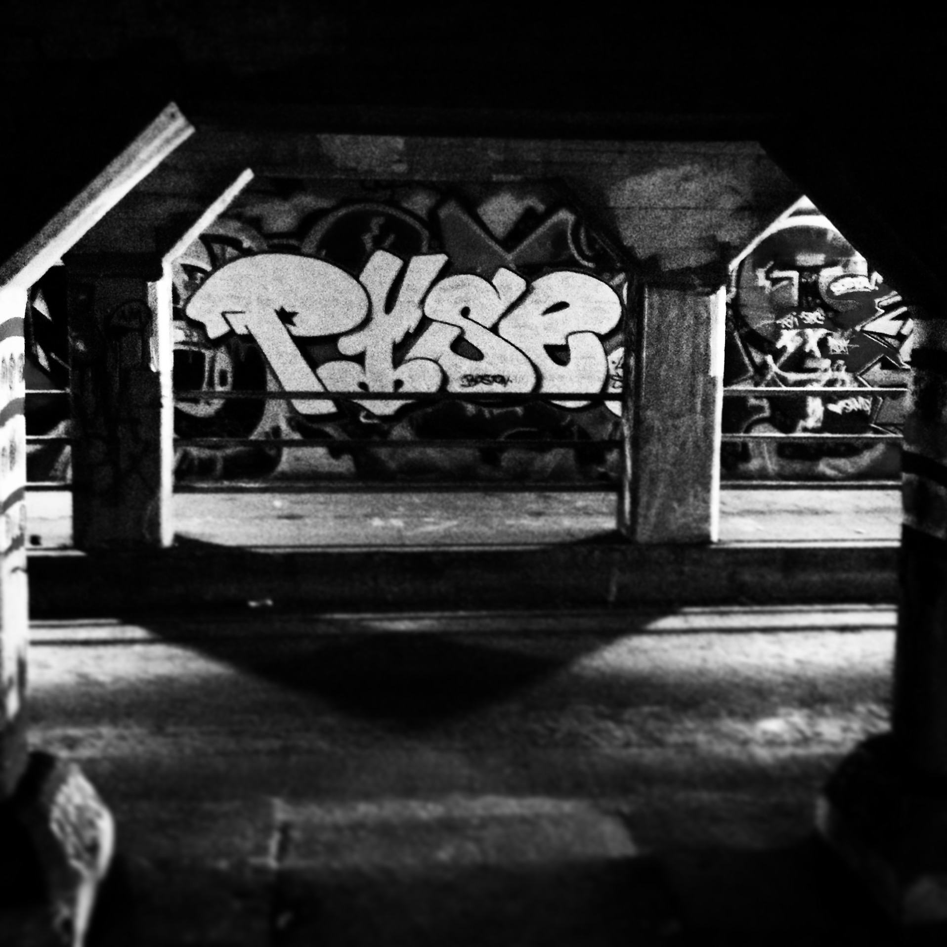 Every winter I have the privilege of making a pilgrimage to norcal where this spot lays in the cut. The homie Pride sharpens up his scissor-style letters while I grind through a grey-scale study. I’m digging the pink pixels that drift off of his piece like a de-frag file. The vato is studying video-game design in Silicon Valley, and the hours upon hours of relentless gaming are beginning to imprint his artistic vision…